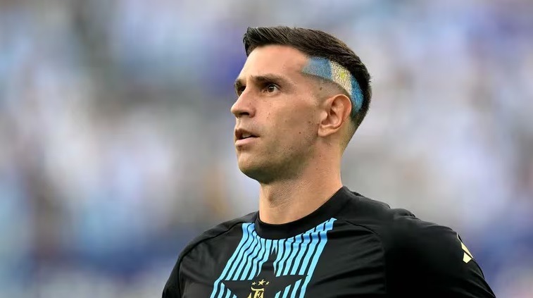 El arquero sorprendió al saltar al campo de juego mostrando la bandera argentina en su pelo Emiliano Martínez está metido…