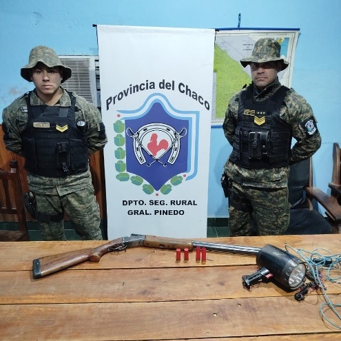 Seguidamente, los rurales al solicitarle la documentación manifestó no poseerla, por ello procedieron al secuestro de una escopeta de calibre 12, varios cartuchos del mismo calibre, dos vainas servidas y un reflector.
