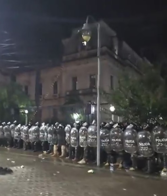 Jujuy – Un enfrentamiento entre manifestantes y la policía se desató este lunes en los alrededores de la Casa de Gobierno de Jujuy, donde efectivos policiales y sus familiares protestaban por reclamos salariales. La movilización, que comenzó de forma pacífica, se tornó violenta en horas de la tarde, con quienes arrojaron piedras, pirotecnia y quemaron gomas frente al edificio oficial.