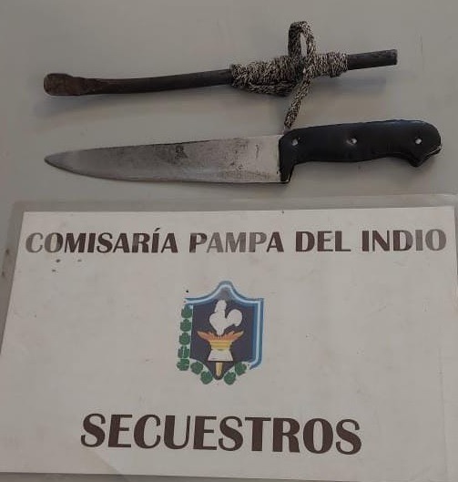 Ayer a la tarde, en inmisiones del hospital Local, los agentes de la comisaría Pampa del Indio realizaban tareas de prevención, cuando demoraron a un joven de 22 años, quien circulaba en una Gilera 110 cilindradas, en poder constaron que trasportaba un arma blanca y en el baúl un hierro con punta. Este no supo explicar de la tenencia, por tal motivo, secuestraron lo hallado junto al rodado, lo condujeron hasta la unidad interviniente, donde fue notificado del arresto preventivo por “Supuesta Infracción al Artículo 41° 60° y 83° del Código de Faltas Provincial (Ley 850-J) a disposición Juzgado Paz y Falta local.