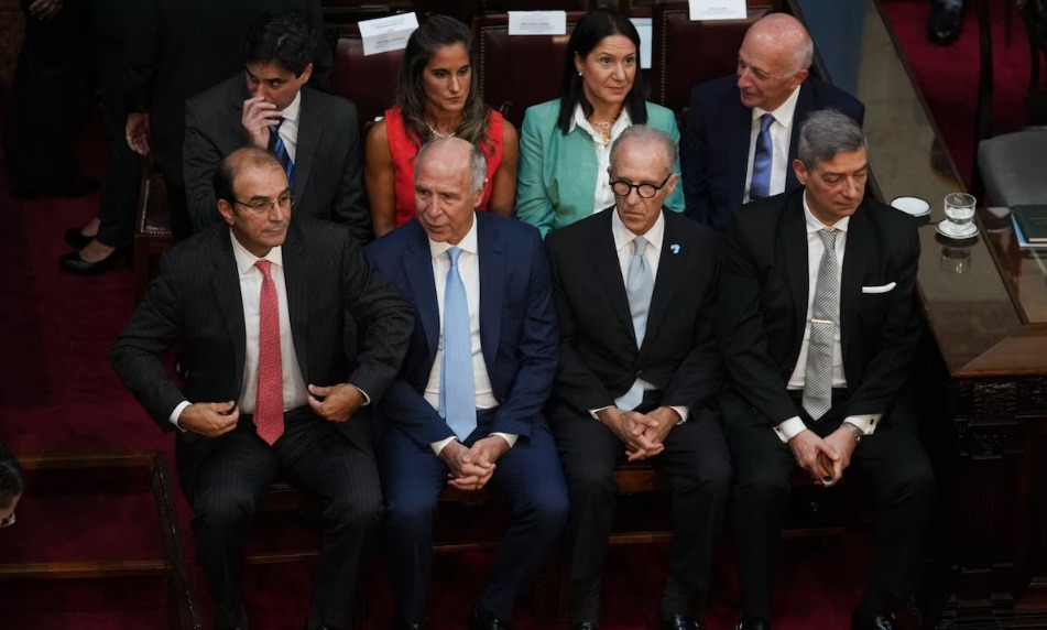 Los jueces de la Corte Suprema de Argentina, de izquierda a derecha, Manuel García Mansilla, Ricardo Lorenzetti, Carlos Rosenkrantz y Horacio RosattiAP