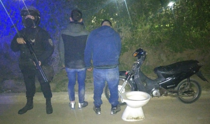 Cerca de la 1:30, el personal de la División C.O.M. patrullaba por distintos barrios de la zona sur de Resistencia. Al circular por la avenida Edison y Arribalzaga, los agentes notaron a dos sujetos a bordo de una motocicleta, transportando un inodoro. Ambos fueron demorados y, tras ser identificados, no pudieron acreditar la procedencia del objeto.