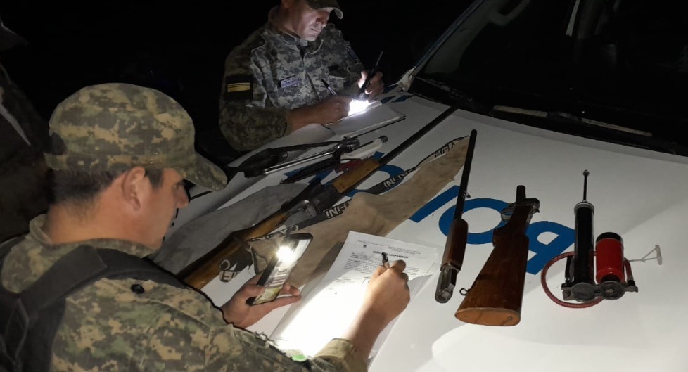 Al proceder con la inspección, los agentes encontraron una escopeta de un caño calibre 20, una escopeta calibre 28, diez cartuchos y dos cuchillos.