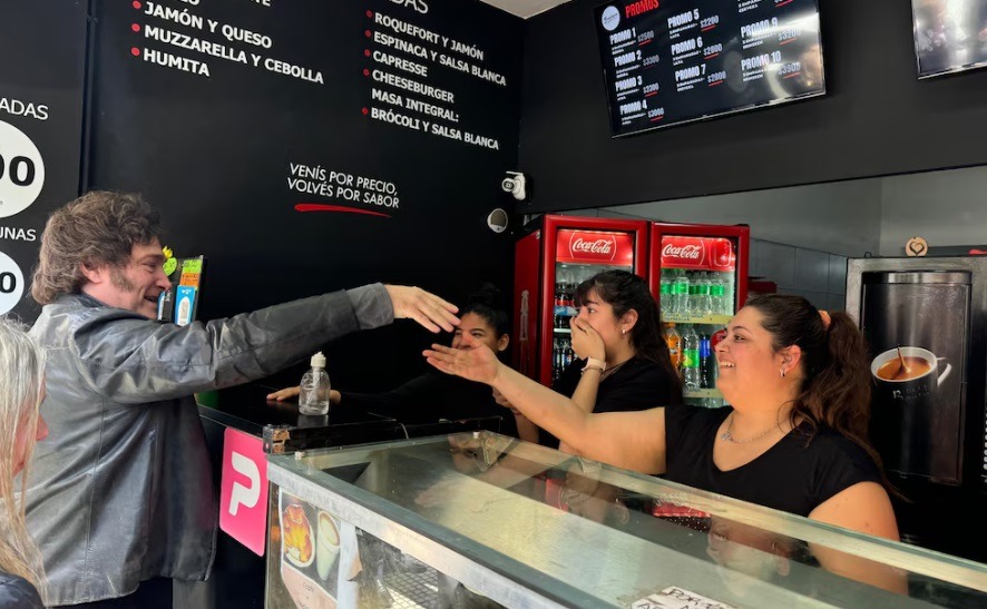 Ayer Milei visitó el comercio en donde se refugió el militante libertario agredido en las inmediaciones del Congreso